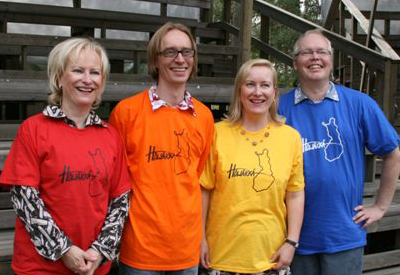 Sinikka ja Tiina Nopola Höljäkkä-paitojen onnellisina omistajina,