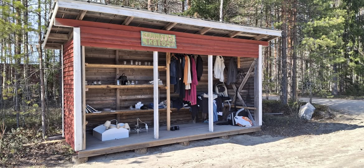 Höljäkän kierrätyskatos löytyy urheilukentän laidalta. Sinne voi tuoda siistejä hyväkuntoisia vaatteita ja erilaisia kodin tarve-esineitä yms. vastaavaa, mutta ei tarpeetonta romua. Muista myös huolehtia paikan järjestyksestä. Alla kuva katoksesta, kun se keväällä avattiin tälle kesäkaudelle.