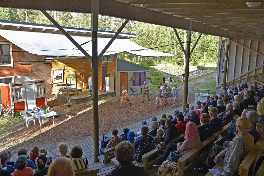 During the months of June and July Höljäkkä theatre group presents full-length plays in its open air theatre located in the courtyard of Höljäkkä Youth Association House. The theatre seats 300 persons.